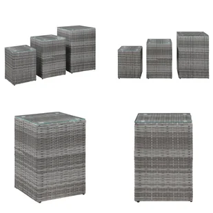 Stoliki boczne 3 szt. ze szklanym blatem z szarego polirattanuNasze stoliki boczne będą doskonałym dodatkiem do wnętrz lub przestrzeni zewnętrznej. Ten stolik boczny jest wykonany z odpornego na warunki pogodowe polirattanu i ma metalową ramę oraz szklany blat, dzięki czemu jest wytrzymały i idealny do codziennego użytku. Dzięki lekkiej konstrukcji jest również łatwy w transporcie. Stolik boczny może być również jako stolik kawowy, stolik do herbaty, stół jadalny itp.
