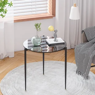 Szklany stolik kawowy (okrągły) - minimalistyczna elegancja Ten okrągły stolik kawowy wykonany ze szkła i metalu dopełni wnętrze Twojego eleganckiego salonu. Nie ma ograniczeń co do pomysłów projektowych: Użyj zestawu o średnicy ok. 50 cm każdy razem, aby stworzyć obszerną przestrzeń do przechowywania czasopism, napojów i przekąsek na wieczór filmowy. Można też ustawić stolik tak, aby wyeksponować rośliny lub zdjęcia.