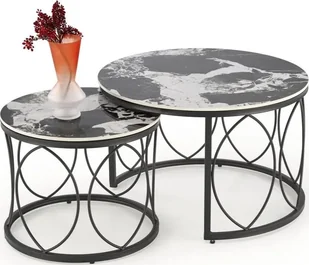 Zestaw 2 stolików ALEXANDRA czarny marmur/czarny HALMAR