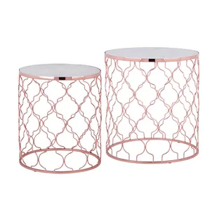 Materiał: powłoka metalowa, biały marmur Banswara Kolor: miedziany, biały Wymiary (DxH): mały stół ok. Ø 40 x 45 cm, duży stół ok. Ø 45 x 50 cm Grubość blatu stołu: