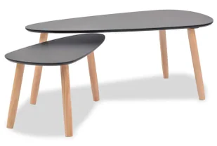 Stworzony, by cieszyć okiem i użytkowaniem: Stoliki w skandynawskim designie dodadzą Twojemu wnętrzu elegancji i nowoczesnego charakteru. Nogi z litego drewna sosnowego oraz blaty z wysokiej jakości płyty meblowej zapewniają stabilność i długą żywotność. Stoliki mogą pełnić funkcję stolików kawowych, nocnych, dekoracyjnych podstawek czy stojaków na rośliny. Zestaw dwóch stolików zajmuje niewiele miejsca, idealnie sprawdzając się nawet w mniejszych wnętrzach.
