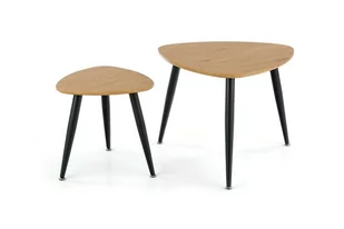 Blaty z MDF-u okleinowanego są łatwe w utrzymaniu czystości, a jednocześnie dodają elegancji i stylu. Owalny kształt blatu jednego ze stolików dodaje mu unikalności i oryginalności. Dzięki temu zestawowi możesz stworzyć interesującą aranżację w swoim salonie, sypialni czy nawet biurze. Wysokość jednego ze stolików wynosi 41 cm, co sprawia, że jest on idealny jako stolik kawowy do relaksu przy kanapie. Drugi stolik, o wysokości 49 cm, może pełnić funkcję stolika bocznego lub podstawki pod lampę.