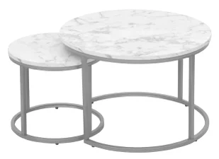 Zestaw stolików kawowych z marmurkowym blatem na metalowej podstawie to propozycja dla miłośników stylowego designu. To prawdziwa kwintesencja elegancji, luksusu oraz funkcjonalności. W skład zestawu wchodzą dwa stoliki o różnych rozmiarach, które z łatwością można zestawić lub rozłożyć według własnych potrzeb. Doskonale odnają się zarówno w salonie, jak i sypialni, przedpokoju, biurze, poczekalni czy też pokoju młodziezowym. Niepowtarzalny styl, wyjątkowa funkcjonalność Trwałość i stabilność metalowej konstrukcjiOdporność blatu na zarysowania oraz łatwość utrzymania w czystościRóżne rozmiary stolików pozwalają na dopasowanie do różnych aranżacji wnętrzElegancki design w stylu nowoczesnymMożliwość wykorzystania stolików jako stojaków na kwiaty lub ozdobyLekka konstrukcja, która umożliwia swobodne przestawienie mebli Doskonałe materiały gwarancją długotrwałego użytkowania Wysokogatunkowa płyta MDF odporna na na zarysowania.