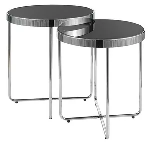 Elegancki zestaw 2 ław SAGA do salonu Zestaw 2 ław SAGA to doskonały wybór do salonu, który chcemy wyposażyć w praktyczne i eleganckie stoliki kawowe. Ława SAGA to w rzeczywistości zestaw składający się z 2 stolików kawowych różnej wielkości, co pozwala na ustawienie ich obok siebie lub w zupełnie różnych częściach salonu. Okrągłe stoliki kawowe mają blat ze szkła hartowanego o czarnej barwie. Atutem szkła hartowanego jest nie tylko jego duża wytrzymałość, ale również łatwość w utrzymaniu w czystości. Dodatkowo na blacie bez obaw można stawiać gorące naczynia.