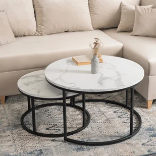 Zestaw Stolików Kawowych DAFNE MAX 60 cm/80 cm Biały Marmur Nowoczesny Glamour