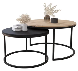 Zestaw Stolików Kawowych Okrągłe Mju 80/60cm - Dąb Artisan/czerń Mat