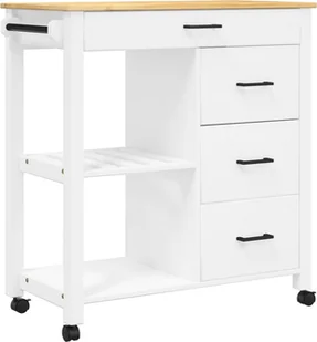 - Trwały materiał: drewno sosnowe to piękny, naturalny materiał. Ma ono prostą strukturę słojów, a sęki nadają mu wyjątkowy, rustykalny wygląd. Wykonany z litego drewna sosnowego wózek kuchenny jest trwały i stabilny.