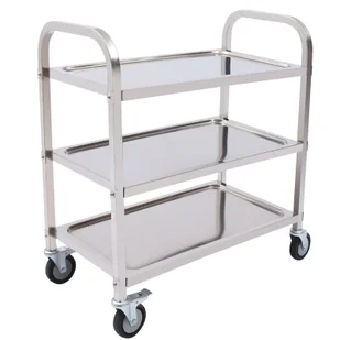 SzczegółyCztery uniwersalne kółka: wózek do serwowania wyposażony jest w cztery uniwersalne kółka na spodzie ułatwiające przemieszczanie. Dwa hamulce skutecznie utrzymują wózek w miejscu, co pozwala uniknąć wielu kłopotów. Wbudowany uchwyt: uchwyt tego wózka do serwowania jest ergonomicznie zaprojektowany, dzięki czemu podnoszenie lub przenoszenie wózka jest bardzo wygodne i łatwe.