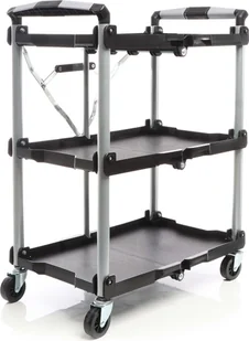 Składany wózek firmy Wiltec ma trzy poziomy i jest elastycznym pomocnikiem w warsztacie, biurze, gastronomii i wszędzie tam, gdzie wymagane jest mobilne przechowywanie. Niezależnie od tego, czy jest to stolik boczny, wózek warsztatowy czy wózek do serwowania, wózek o wymiarach 38 x 72 x 85 cm jest wszechstronnym środkiem transportu. Wielofunkcyjny wózek ma ramę ze stopu aluminium i jest wyposażony w trzy plastikowe poziomy, z których każdy może przenosić maksymalne obciążenie 50 kg - ale nie w tym samym czasie, ponieważ całkowite obciążenie całego wózka wynosi 120 kg. Dzięki czterem plastikowym kółkom wózek do serwowania można przesuwać dokładnie tam, gdzie jest potrzebny. Dwa uchwyty do pchania są wygodnie obudowane, aby zapewnić pewny i wygodny chwyt.