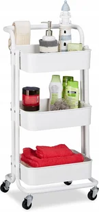metal, tworzywo sztuczne - W różnych kolorach Wszechstronny wózek kuchenny z półkami- Dolna półka wys. x szer. x gł. : ok. 8,5 x 37,5 x 28 cm - Środkowa półka wys. x szer. x gł. : ok. 8,5 x 36,5 x 27 cm - Górna półka wys. x szer. x gł. : ok. 8,5 x 35,5 x 26 cm Praktyczny metalowy wózek do użytku domowego - 3 półki z krawędziami zabezpieczającymi przed upadkiem - Do przechowywania lub jako mobilny pomocnik - Odpowiedni do kuchni, łazienki, biura i nie tylko - Łatwy do przemieszczania dzięki 4 plastikowym kółkom - Z 2 hamulcami blokującymi dla bezpiecznej pozycji - Ponadczasowy, prosty design dobrze komponuje się z otoczeniem Zakres dostawy - 1x wózek do serwowania w pojedynczych częściach (w wybranym kolorze) - Z instrukcją i materiałem montażowym - Elementy dekoracyjne nie wchodzą w zakres dostawy
