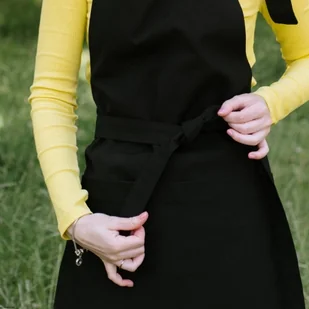 Czarny fartuch kuchenny - niezbędny dodatek dla wszystkich miłośników gotowania. Trwały, praktyczny i stylowy, idealnie sprawdzi się w Twojej kuchennej kolekcji.