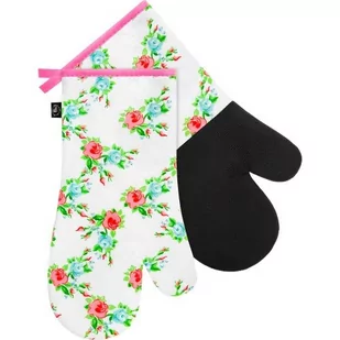 Silikonowy komplet rękawic kuchennych w rozmiarze 18x33 cm został wykonany z naturalnej, bawełnianej przędzy oraz wypełniony poliestrową pianką. Od wewnętrznej strony posiada czarną powłokę silikonową, która posiada wysoki parametr żaroodporny. Jest niezastąpionym elementem w kuchni, gdyż zabezpiecza dłonie przed kontaktem z wysoką temperaturą podczas gotowania i pieczenia. Wzdłuż krawędzi posiada przewieszkę, umożliwiającą zawieszenie na haczyku. Charakteryzuje się efektownym nadrukiem modnych wzorów, które bez wątpienia urozmaicają jej wygląd.