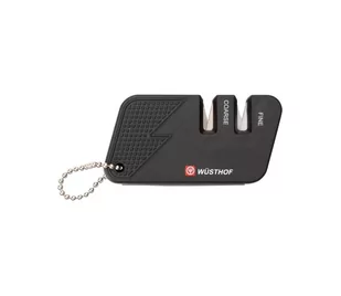 Ostrzałka do noży kieszonkowych. Kąt ostrzenia: ok. 15° z każdej strony = kąt całkowity ok. 30°. Pierwszy poziom ostrzenia zgrubnego wyostrza tępe krawędzie i jest zalecany, gdy nóż jest całkowicie tępy. Drugi poziom nadaje się do dokładnego ostrzenia będącego kontynuacją pierwszego poziomu, jak również do regularnego ostrzenia ostrza.