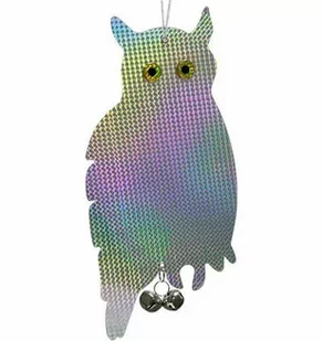 Odblaskowy odstraszacz ptaków w kształcie siedzącej sowy. Doskonale odstrasza niepożądane ptactwo dzięki holograficznej powłoce dającej wrażenie trójwymiarowości. Wyposażona w dwa dodatkowe dzwoneczki na spodzie, które potęgują efekt odstraszający. Produkt przeznaczony do zawieszenia na dedykowanym sznurku w górnej części. Świetnie sprawdzi się przy ochronie upraw oraz przydomowych ogródków.