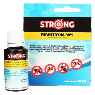 STRONG PERMETRYNA 40% OPRYSK KOMARY MUCHY PCHŁY KLESZCZE 30ML