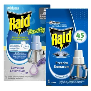 Buteleczka z płynem Raid® wystarcza na 45 nocy, przy stosowaniu przez 8 godzin w nocy.
