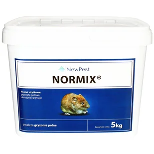 NEWPEST NORMIX GOTOWA DO UŻYCIA TRUTKA NA SZCZURY I MYSZY GRANULAT DIFENAKUM 5 KG ZWALCZA GRYZONIE POLNE GOTOWA DO UŻYCIA PRZYNĘTA W POSTACI GRANULATU mocna substancja - wystarczy jednorazowe spożycie wygodna aplikacja - gotowy do wyłożenia granulat uniwersalne zastosowanie - do użytku wewnątrz i na zewnątrz polecana przez profesjonalnych deratyzatorów OPIS PRODUKTU Gotowy do użycia środek gryzoniobójczy NEWPEST NORMIX w formie granulatu działający jako trująca jednodawkowa przynęta pokarmowa. Preparat zawiera denatonium, który ze względu na gorzki smak zapobiega przypadkowemu spożyciu przez ludzi. ZASTOSOWANIE Preparat NEWPEST NORMIX jest przeznaczony do zwalczania różnych gryzoni, w tym szczurów (Szczur wędrowny, Szczur śniady) i myszy (Mysz domowa) wewnątrz i wokół budynków. SPOSÓB UŻYCIA Przed zastosowaniem NEWPEST NORMIX należy przeczytać etykietę i określić poziom infestacji (liczebność organizmów szkodliwych). Przynętę należy umieścić w miejscach, w których występują oznaki aktywności, takie jak świeże odchody, wewnątrz lub w pobliżu gniazd i nor, ścieżek i miejscach żerowania gryzoni.