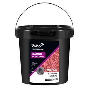 Zbożowa trutka na szczury VACO 10kg Bromadiolon 0,05g/kg Trutka na myszy i szczury VACO w formie zatrutego ziarna to produkt przeznaczony jest do zwalczania szczurów i myszy w pomieszczeniach i wokół budynków. Znajdzie swoje zastosowanie wszędzie tam gdzie występują gryzonie. Trutka ta nie wywołuje efektu podejrzliwości u gryzoni przez co jest rozwiązaniem bezkompromisowym i wyjątkowo skutecznym. Zatruta pszenica sprawdza się szczególnie w miejscach gdzie gryzonie przyzwyczajone są do obecności pokarmu w postaci ziaren, nasion, a więc np. w krajobrazie rolniczym. Szczury i myszy postrzegają zatrute ziarno jako źródło pokarmu. Już pojedyncze karmienie środkiem gryzoniobójczym wywołuje u gryzoni zaburzenia krzepnięcia krwi i krwotok. Trutka zbożowa na myszy i szczury VACO jest wyjątkowo silnym preparatem gryzoniobójczym.