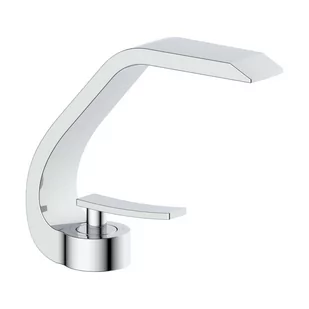 Bateria umywalkowa ze stała wylewką, zintegrowana głowica mieszająca w korpusie baterii. Płynna regulacja strumienia wody, duży zasięg wylewki.