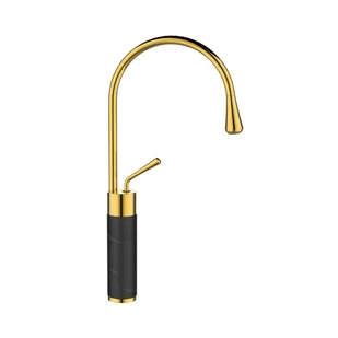 Złote baterie łazienkowe to popularne rozwiązanie w wielu polskich łazienkach. Bateria umywalkowa Stone to niezwykłe połączenie złota i czerni. Wylewka w kolorze złotym zakończona subtelnym dzwoneczkiem, zestawiona została z czarnym kamiennym korpusem o marmurowym wzorze. Produkt idealny jest dla nowoczesnych łazienek w stylu glamour. Bateria pomoże stworzyć funkcjonalną strefę umywalkową wraz z umywalką stawianą na blat.