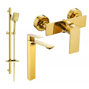 Złoty Wysokość: 800 mm Szerokość drążka: 22 mm Odległość od ściany: 105 mm Mydelniczka Przesuwny uchwyt na słuchawkę Regulowane uchwyty montażowe Materiał słuchawki: Tworzywo sztuczne Wykończenie słuchawki: