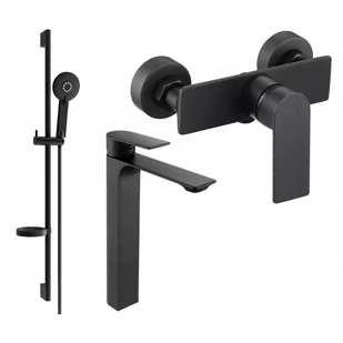 Czarny Wysokość: 900 mm Szerokość drążka: 22 mm Odległość od ściany: 110 mm Mydelniczka Przesuwny uchwyt na słuchawkę Regulowane uchwyty montażowe Materiał słuchawki: Tworzywo sztuczne Wykończenie słuchawki: