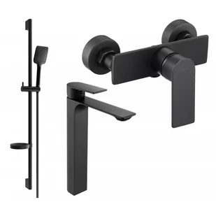 Czarny Wysokość: 900 mm Szerokość drążka: 22 mm Odległość od ściany: 110 mm Mydelniczka Przesuwny uchwyt na słuchawkę Regulowane uchwyty montażowe Materiał słuchawki: Tworzywo sztuczne Wykończenie słuchawki: