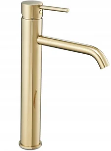 WYSOKA STOJĄCA BATERIA UMYWALKOWA Typ baterii: łazienkowa, umywalkowa Sposób montażu baterii: na umywalkę lub blat Materiał: korpus mosiężny. warstwa wierzchnia - kolor jasny złoty Typ głowicy:
