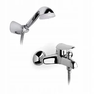 Jednouchwytowa bateria natryskowa ścienna z wężem i słuchawką chromowaną FUN bez regulacji Montaż dwuotworowy, przyłącze mimośrodowe, ceramiczna głowica z możliwością ograniczenia maksymalnej temperatury i wypływu wody, perlator, słuchawka natryskowa z wężem o długości 170 cm i uchwytem ściennym chrom
