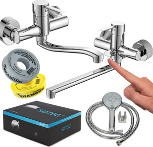 SOTBE UNICORN bateria wannowa z długą wylewką + SOTBE Bateria umywalkowa ścienna