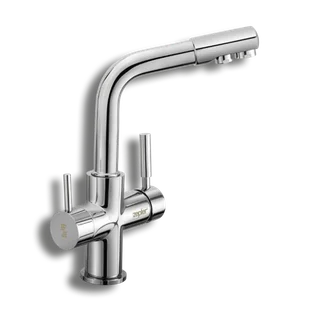 Bateria trójdrożna to rozwiązanie umożliwiające łatwy dostęp do wody filtrowanej bez mieszania jej z nieoczyszczoną wodą wodociągową. Wyposażona jest w trzy oddzielne przewody dostarczające wodę ciepłą, zimną i filtrowaną. Nasza bateria wykonana jest z wysokiej jakości mosiądzu (CW719) i posiada podwójną warstwę chromowo-niklową, dzięki czemu jest wysoce odporna na korozję. Model Pearl będzie również eleganckim elementem wnętrza Twojej kuchni. Tworzy zgrany duet z urządzeniem do filtrowania wody Aqueena Pro.