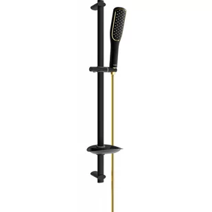 29 mm Odległość od ściany: 165 mm Mydelniczka Przesuwny uchwyt na słuchawkę Regulowane uchwyty montażowe Materiał słuchawki: Tworzywo sztuczne Wykończenie słuchawki: Czarny/Złoty Ilość funkcji: 1 Materiał węża: