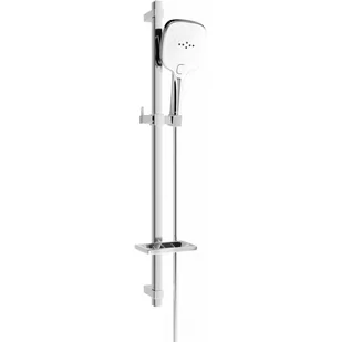 22 mm Odległość od ściany: 160 mm Mydelniczka Przesuwny uchwyt na słuchawkę Regulowane uchwyty montażowe Materiał słuchawki: Tworzywo sztuczne Wykończenie słuchawki: Chrom/Biały Ilość funkcji: 3 Zmiana strumienia przyciskiem Materiał wąż: