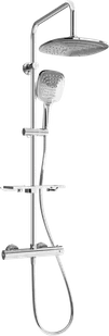 150 mmBlokada gorącej wody przy 38°C Mexen KT17 zestaw prysznicowy natynkowy z deszczownicą i baterią termostatyczną, chrom - 771501793-00 Specyfikacja produktu: Seria: KaiKolor: ChromKształt: OkrągłyZ termostatem: TakZ baterią: TakDeszczownica: