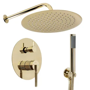 Zestaw prysznicowy podtynkowy Agron w złotym wykończeniu wyróżnia się nowoczesnym, minimalistycznym designem z subtelnymi ryflowaniami, co dodaje mu wyjątkowego charakteru. Dzięki specjalnej fazie produkcji zestaw gwarantujemy maksymalne bezpieczeństwo i komfort w codziennym użytkowaniu. Niepowtarzalne wzornictwo oraz wysoka jakość użytych materiałów dają gwarancję trwałości i niezawodność przez długie lata. Dzięki zaawansowanej technologicznie metody nakładania powłoki Pvd otrzymujemy powierzchnię 15-krotnie wytrzymalszą, od klasycznego galwanizowania. Gwarantuje to wysoką odporność na uszkodzenia mechaniczne, korozję, oraz wszelkiego rodzaju czynniki wpływające na powolną erozję powierzchni produktu.