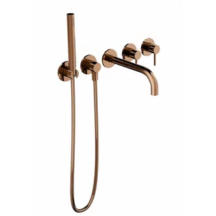 Bateria wannowa 5-otworowa podtynkowy Simplon został wykonana z wysokogatunkowego mosiądzu oraz wyposażona w najwyższej jakości głowicę ceramiczną. Zewnętrzna powłoka produktu została uzyskana zaawansowaną technologią PVD, która gwarantuje najwyższą trwałość i odporność na uszkodzenia. Montaż podtynkowy gwarantuje oszczędność miejsca, a także łatwość czyszczenia. Miedź jest szlachetnym wykończeniem o ciepłej czerwonobrązowej barwie i idealnie gładkiej, lśniącej powierzchni.