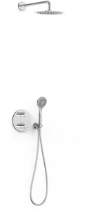 Tres Therm-Box zestaw prysznicowy podtynkowy termostatyczny z deszczownicą chrom 20425004 - korpus podtynkowy w zestawie - pokrętło okrągłe z ABS ze sterowaniem temperaturą - dystrybutor ceramiczny 2-drożny - ramię naścienne z obrotową deszczownicą ze stali nierdzewnej Ø 25 cm - uchwyt do słuchawki prysznicowej z przyłączem w ścianie - słuchawka prysznicowa Ø 10 cm, 3 rodzaje strumienia - z systemem zapobiegającym osadzaniu się kamienia - wąż prysznicowy satynowy - kolor: chrom