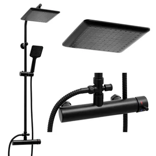 Zestaw prysznicowy czarny ścienny bateria natrysk z deszczownicą 23 cm - yoka kod: BP.BODO-23-BLK