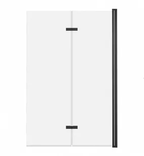 wymiary: 100x150 cm, dwuczęściowy, szkło: transparentne, kolor profili i zawiasów: czarny mat, grubość szkła: 6mm, rodzaj zawiasów: obrotowe 180 º, powłoka NANO dwustronna.