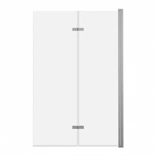 wymiary: 120x150 cm, dwuczęściowy, szkło: transparentne, kolor profili i zawiasów: nikiel szczotkowany z powłoką PVD, grubość szkła: 6mm, rodzaj zawiasów: obrotowe 180 º, powłoka NANO dwustronna.