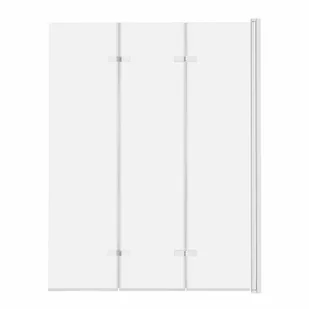 wymiary: 100x150 cm, trzyczęściowy, szkło: transparentne, kolor profili i zawiasów: biały, grubość szkła: 6mm, rodzaj zawiasów: obrotowe 180 º, powłoka NANO dwustronna.