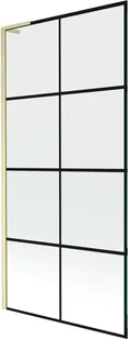 Mexen Next L parawan nawannowy 1-skrzydłowy 90 x 150 cm, czarna kratka, złoty szczotkowany - 895-090-000-03-77-55