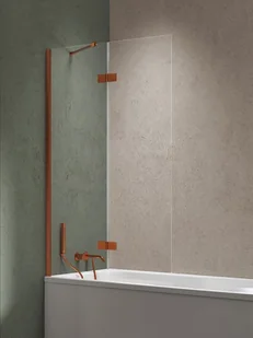 Parawan nawannowy Nesta Copper Brushed 100 cm zachwyca eleganckim wykończeniem w odcieniu miedzi szczotkowanej. Tafla hartowanego szkła 6 mm z powłoką Active Shield 2. 0 gwarantuje trwałość i łatwe czyszczenie, a wspornik kątowy zapewnia stabilność i stylowy wygląd łazienki.