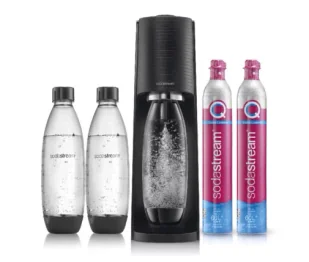 Saturator do wody gazowanej SodaStream Terra - Czarny zestaw + 2 butelki + 2 naboje CO2