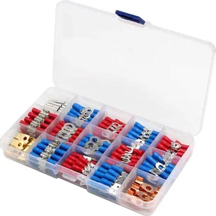 Zestaw konektorów 300 sztukIzolowane różne konektory zaciskane dostarczone w solidnym opakowaniu z elastycznego plastikuOpakowanie umożliwia kontrolę wzrokową, zapobiega mieszaniu się różnych konektorów.Opis przedmiotu:Materiał: PVC + miedźSkrzynia do przechowywania: tworzywo sztuczneNapięcie: 600 V.Rozmiar:Czerwony: AWG 22-18 pasuje do drutu / kabla 0,5-1,5 mm225 sztuk x złącza widełkowe20 sztuk x złącza oczkowe15 sztuk x złącza oczkowe20 sztuk x złącza oczkowe25 sztuk x złącza widełkowe25 sztuk x żeńskie płaskieNiebieski: AWG 16-14 pasuje do drutu / kabla 1,5-2,5 mm225 sztuk x złącza widełkowe20 sztuk x złącza oczkowe15 sztuk x złącza oczkowe15 sztuk x złącza oczkowe25 sztuk x Złącza widełkowe25 sztuk x żeńskie płaskieInne złącza:15 sztuk x Miedź OT-10A15 sztuk x Miedź Miedź DT815 sztuk x Walcowane Terminale Łączące