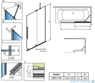 Radaway Furo PND II parawan nawannowySeria: Brushed CollectionOkucia: szczotkowany nikielsposób otwierania drzwiKolor szkła: przejrzysteSzerokość (X): 139-140 cmWysokość: