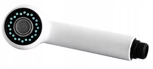 Oferujemy Państwu słuchawkę do baterii z wyciąganą wylewką Słuchawka kuchenna, wykonana z tworzywa PCV W kolorze - BIAŁY Gwint standardowy 1/2" Powierzchnia słuchawki została wykonana z wysokiej jakości chromu 2 - funkcje: prysznic lub strumień ciągły Gumki przeciw osadzaniu się kamienia Średnica słuchawki 45mm Długość słuchawki 170mm Pasuje do każdego węża kuchennego z przyłączem 1/2" Chrom odporny na zarysowania i wysoką temperaturę