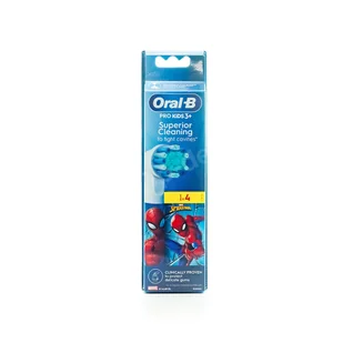 Końcówki Oral-B PRO Kids Spiderman zostały zaprojektowane specjalnie z myślą o dzieciach w wieku od 3 lat. Wyposażone w delikatne włosie, które chroni wrażliwe dziąsła, zapewniają skuteczne usuwanie płytki nazębnej. Opakowanie zawiera 4 sztuki końcówek.