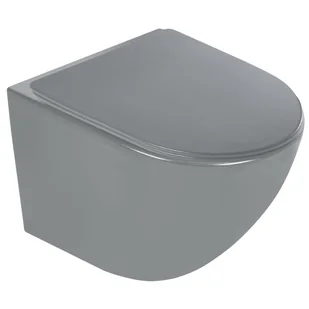 Szara miska WC pół-mat z deską soft-close ,8 lat gwarancji Dane techniczne: Kolor: szara półmatowa Materiał: ceramika szkliwiona Odpływ: 100 mm Odpływ wody: poziomy Rozstaw otworów montażowych: