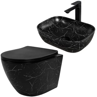 Rea ZESTAW MISA CARLO WC + UMYWALKA BELINDA MATT BLACK MARBLE